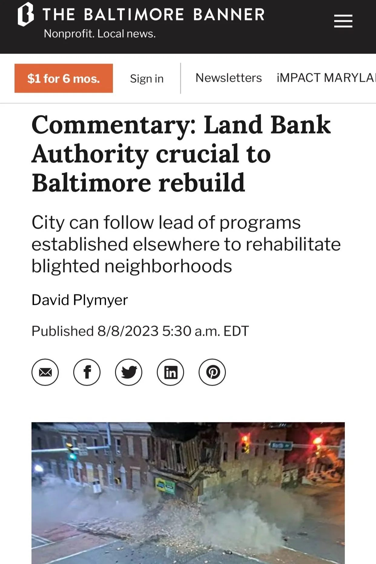 Commentary: Land Bank Authority Crucial to Baltimore Rebuild